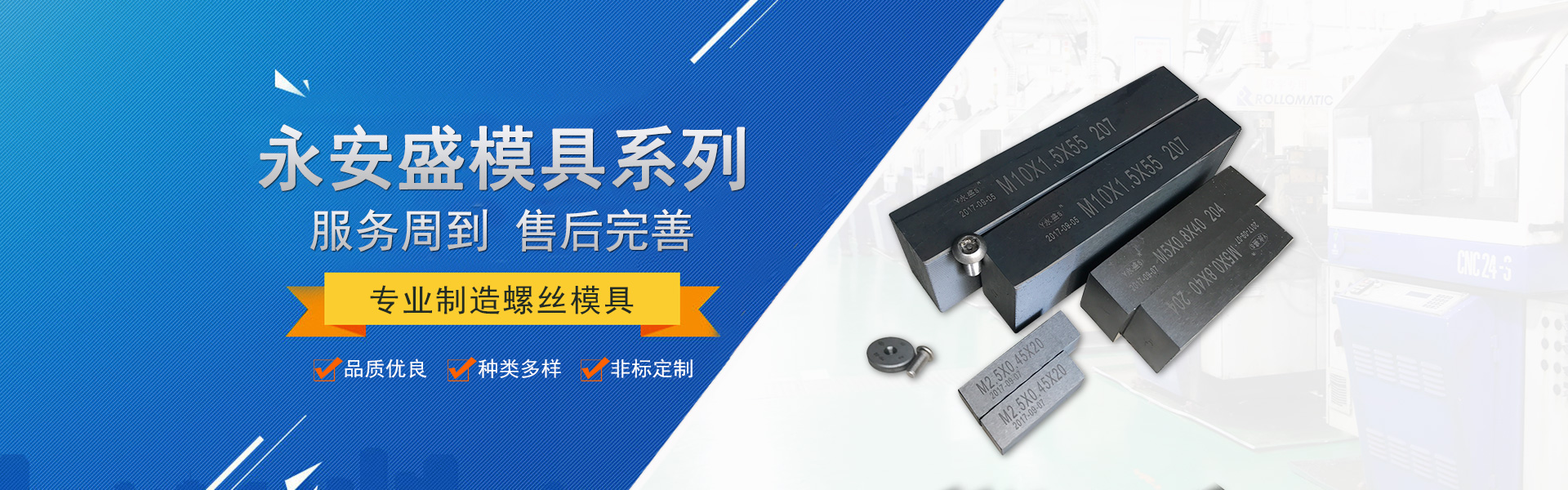 永安盛模具公司專業制造螺絲模具,產品有沖頭模、搓絲板、鎢鋼模及頂針及其他非標模具。